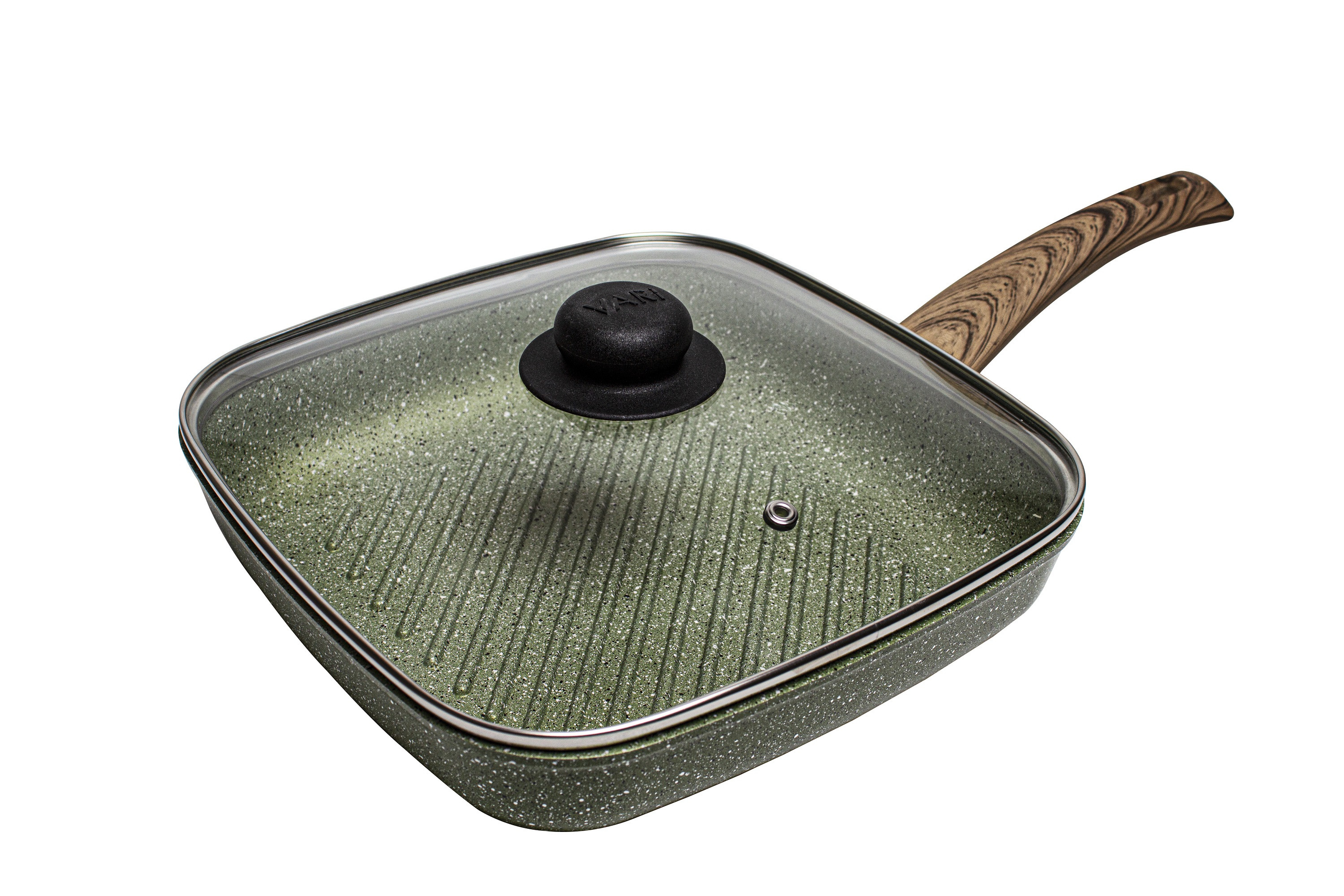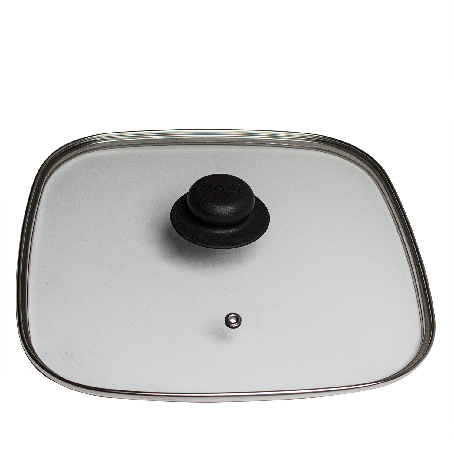 Крышка для сковороды VARI квадратная 28х28 из термостойкого стекла, с металлическим ободом, выполненным из высококачественной нержавеющей стали, с отверстием для выхода пара. Обод защищает крышку от повреждений. Все крышки сделаны из жаропрочного стекла с термостойкими бакелитовыми ручками. Можно мыть в посудомоечной машине.