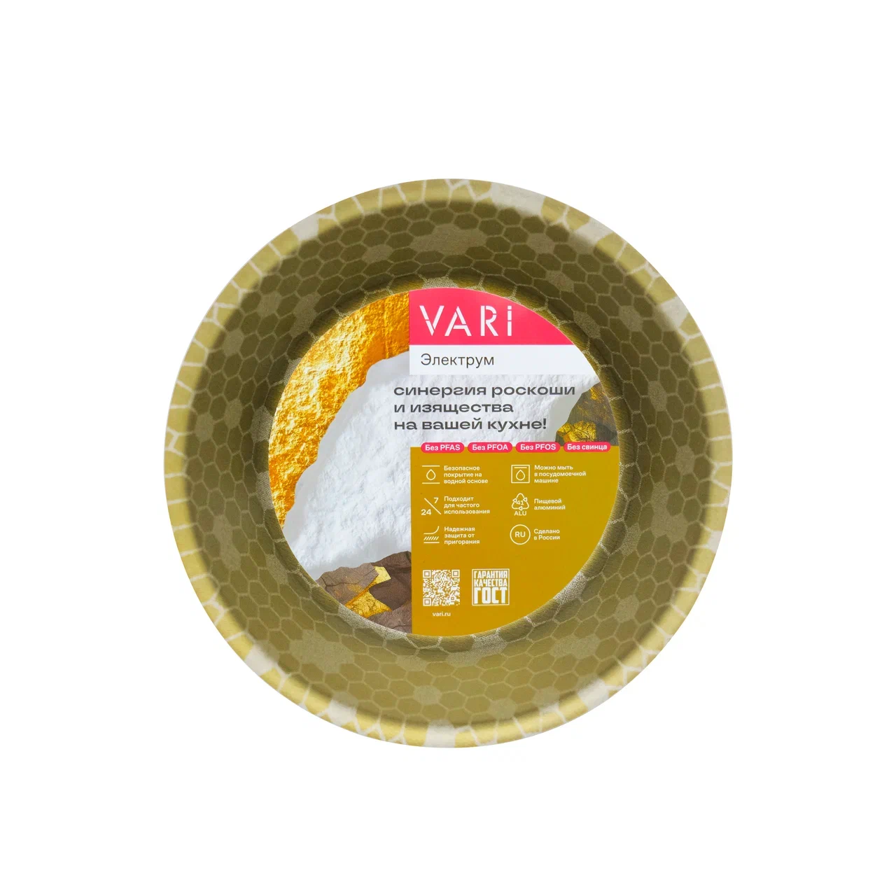 Коллекция «Электрум» — это яркое сочетание двух благородных металлов: золота и серебра. Уникальный дизайн посуды не только позволит вам привнести нотку роскоши в интерьер вашего дома. Коллекция изготовлена из качественного пищевого алюминия и подходит почти для всех типов плит. Благодаря трёхслойному антипригарному покрытию на водной основе, готовить на этой посуде можно практически без масла. А эффектное покрытие с цветовым сочетанием золото и серебро добавит немного роскоши вашей кухни и вдохновит вас на создания новых блюд!