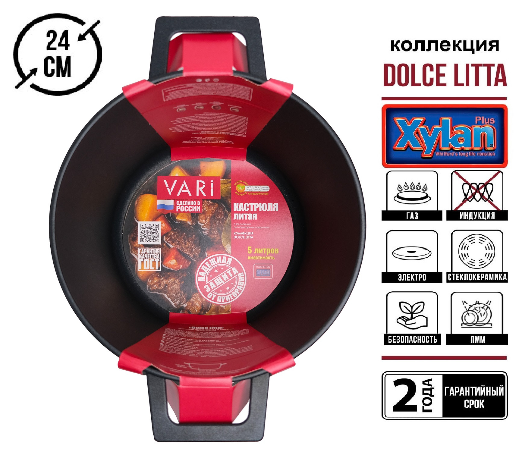 • Изделие подходит для газовых, электрических и стеклокерамических плит. Можно мыть в посудомоечной машине.
