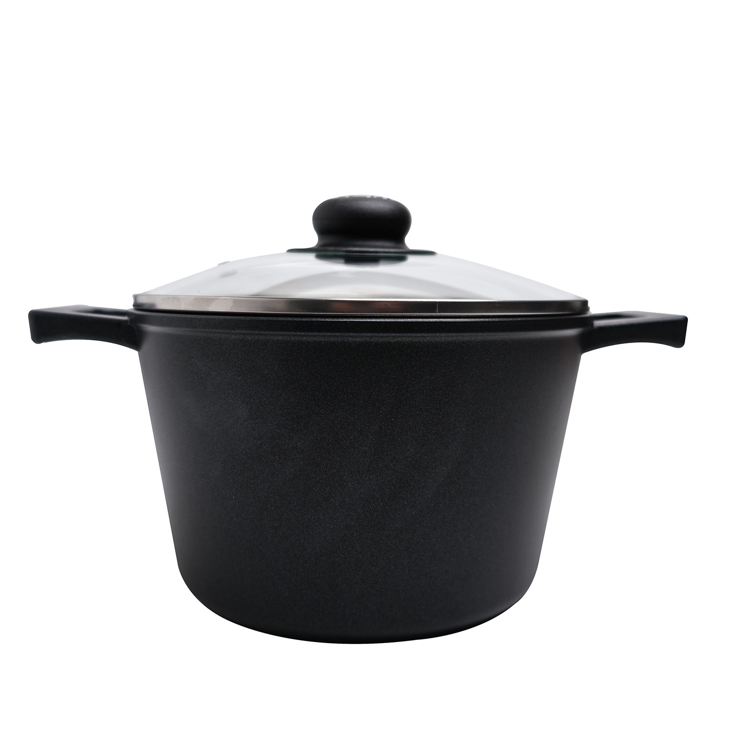 Кастрюля алюминиевая 3л с крышкой «Dolce Litta». Коллекция создана для тех, кто ценит традиции. Абсолютно черная, классической формы, без декоративных элементов, прочный массивный корпус и толстое дно для приготовления разнообразных блюд с отменным вкусом.