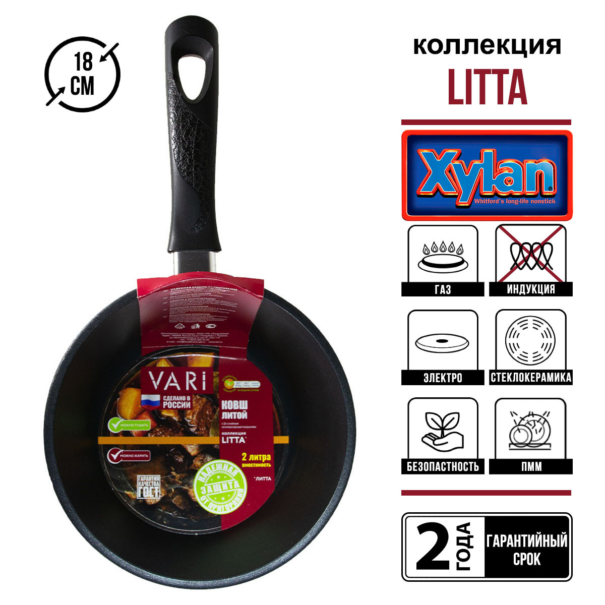 Ковшик кухонный с крышкой 2л относится к современной коллекции «LITTA». Продукция VARI изготовлена из толстостенного алюминия, который хорошо и быстро раскаляется и долго держит тепло. Толстое дно равномерно распределяет жар на ковш с антипригарным покрытием по всей поверхности и обеспечивает равномерную прожарку.