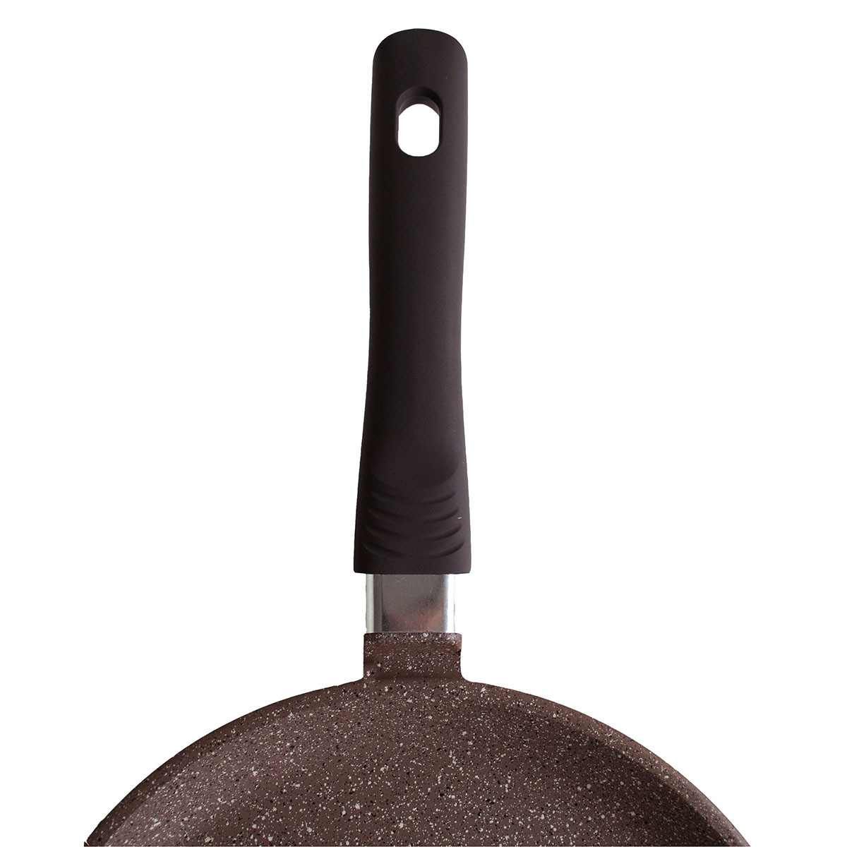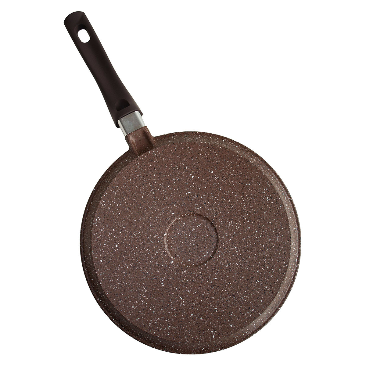 Блинная сковорода 24см PIETRA изготовлена из литого алюминия, имеет высокие антипригарные свойства, устойчивость к царапинам и истиранию. Вы можете использовать металлические лопатки и другие аксессуары без какого-либо ущерба для покрытия. Качественное антипригарное покрытие Whitford Quantanium нанесено в три слоя и не допускает пригорания продуктов, позволяя готовить без масла. Покрытие не содержит PFOA (перфтороктановую кислоту), поэтому безопасно для человека. Сковорода изготовлена из толстостенного алюминия, который быстро раскаляется и долго держит тепло. Массивное дно равномерно распределяет жар по всей поверхности и обеспечивает равномерную прожарку. С наружной стороны сковороды нанесено жаростойкое силиконовое покрытие, предохраняющее стеклокерамическую плиту от повреждений и загрязнений. Ручка не нагревается, не скользит в руке. Изделие подходит для газовых, электрических и стеклокерамических плит. После использования можно мыть в посудомоечной машине.