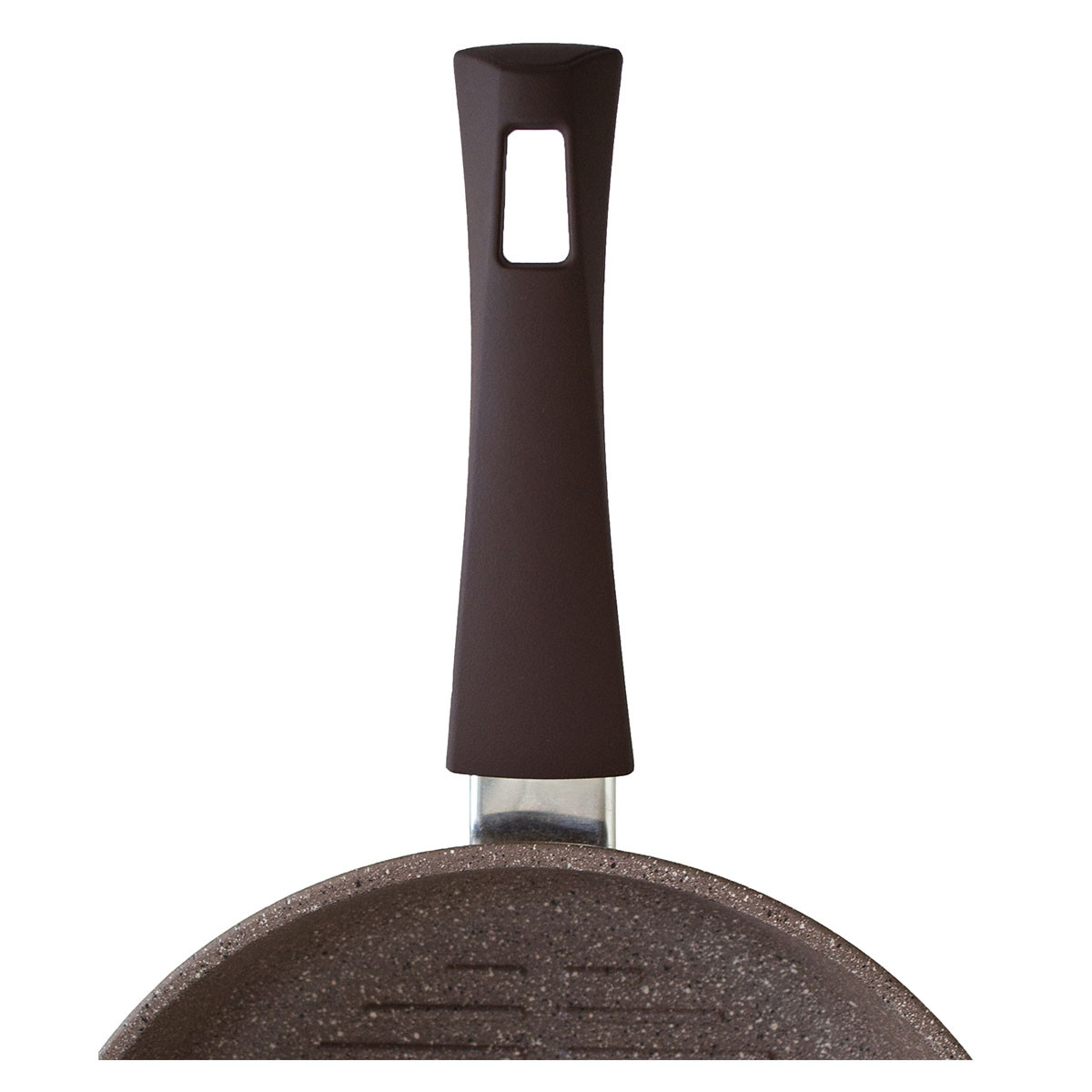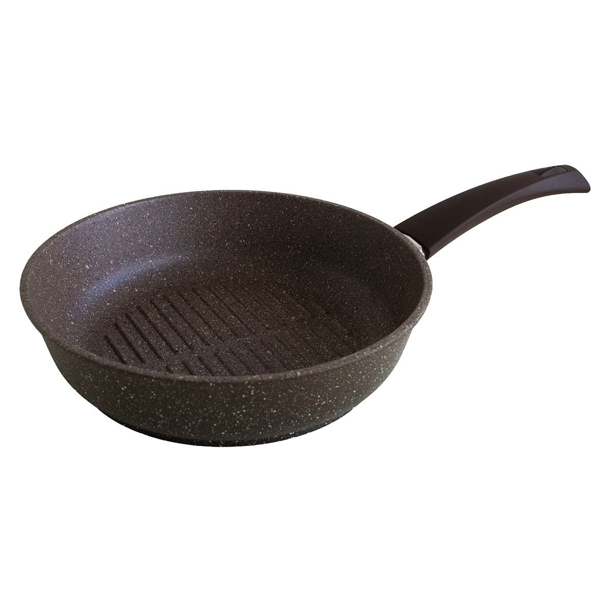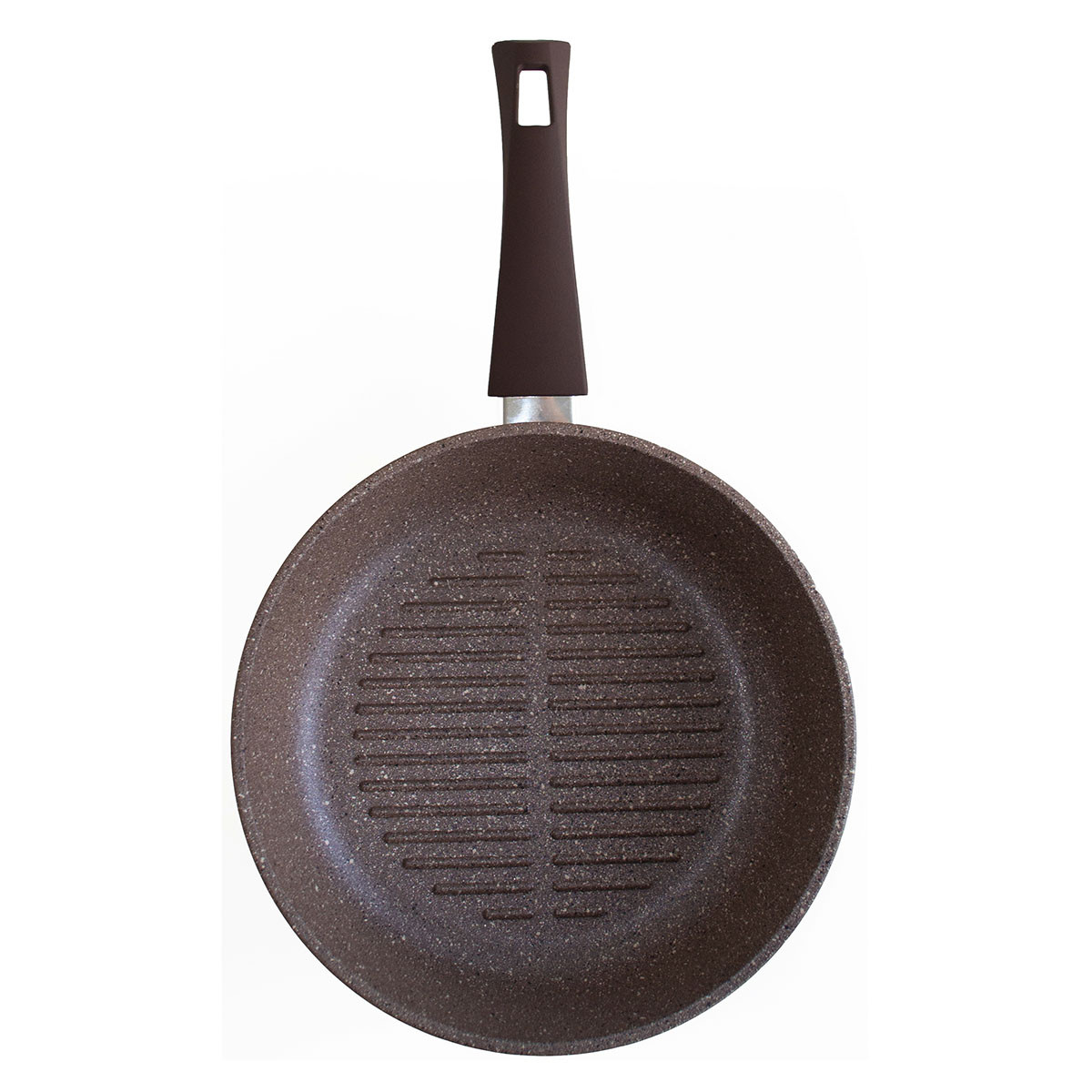 Сковорода-гриль 26см PIETRA изготовлена из литого алюминия, имеет высокие антипригарные свойства, устойчивость к царапинам и истиранию. Допускается использование металлических лопаток и других аксессуаров без ущерба для покрытия. Качественное антипригарное покрытие Quantanium нанесено в три слоя и не допускает пригорания продуктов, позволяя готовить без масла. Покрытие не содержит PFOA (перфтороктановую кислоту), поэтому безопасно для человека. Сковорода изготовлена из толстостенного алюминия, который быстро раскаляется и долго держит тепло. Массивное дно равномерно распределяет жар по всей поверхности и обеспечивает равномерную прожарку. С наружной стороны сковороды нанесено жаростойкое силиконовое покрытие, предохраняющее стеклокерамическую плиту от повреждений и загрязнений. Ручка Soft Touch не нагревается, не скользит в руке. Изделие подходит для газовых, электрических и стеклокерамических плит. Можно мыть в посудомоечной машине.