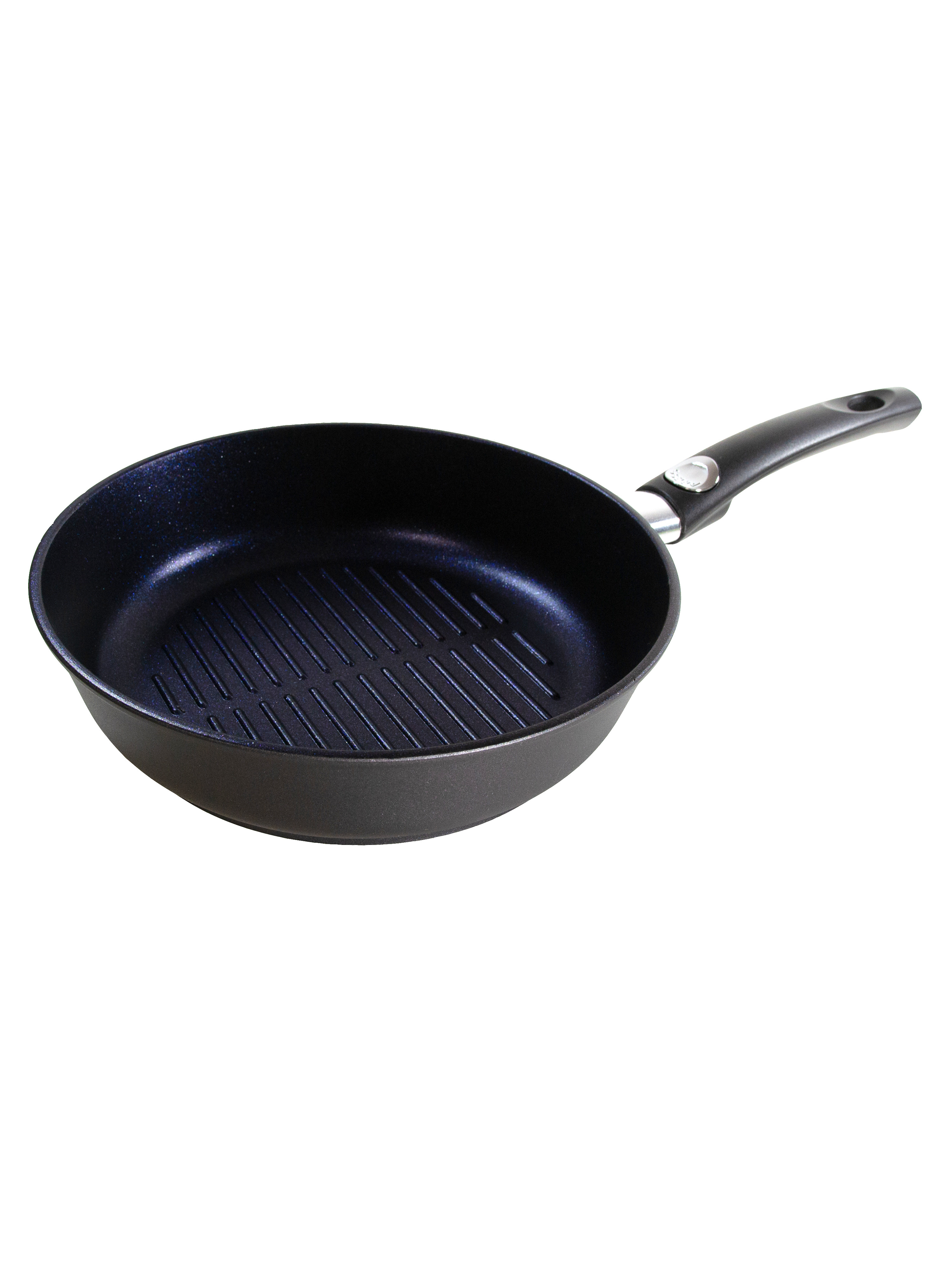 • Благодаря толстому рифленому дну продукты приобретают аппетитный рисунок и равномерно прожариваются без масла, сохраняя в себе сочность.