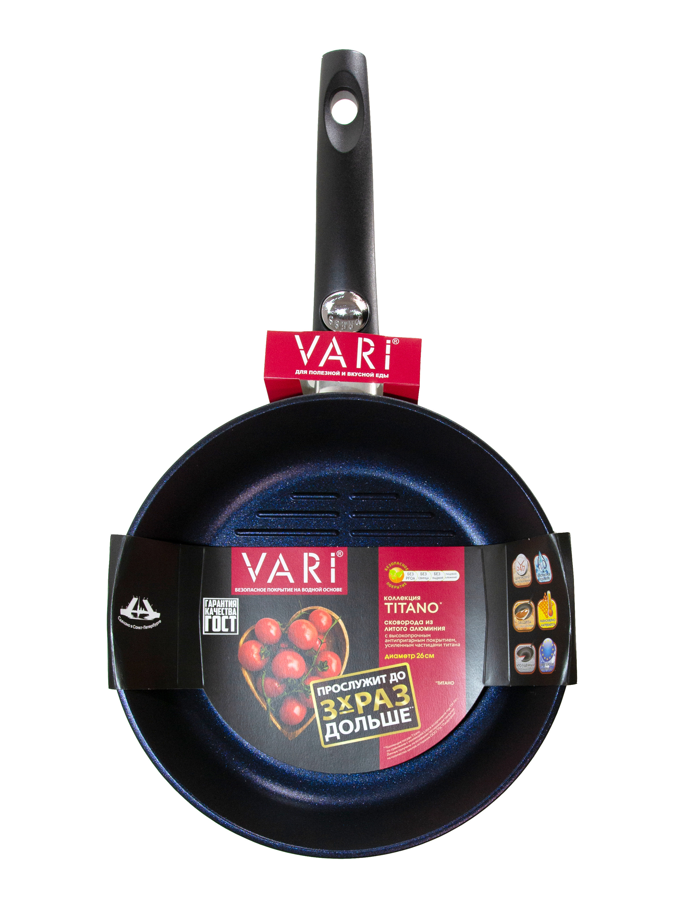 • Готовьте без масла - качественное антипригарное покрытие Quantanium нанесено в три слоя и не допускает пригорания продуктов.