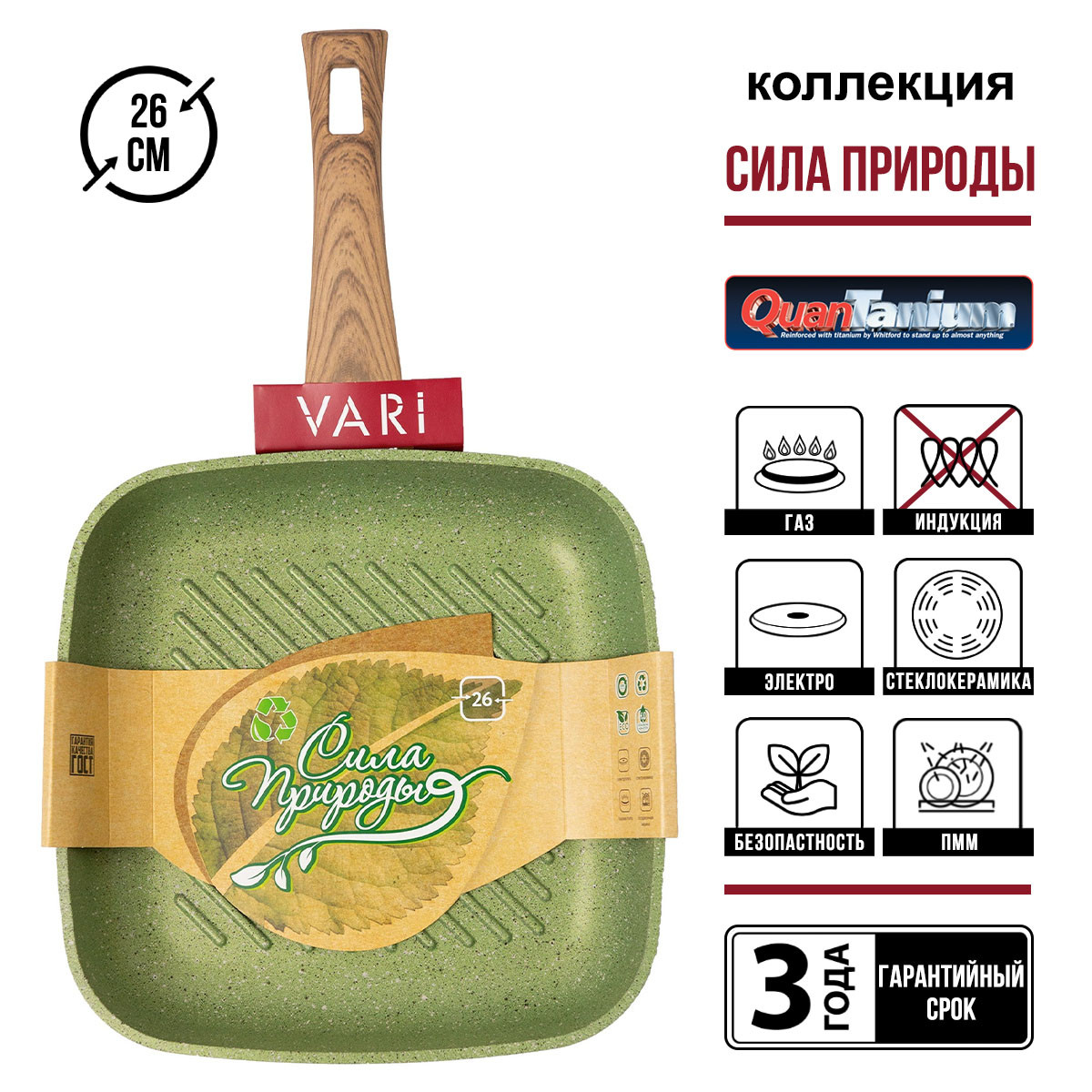 Сковорода-гриль квадратная литая VARI "Сила природы" 26*26 cм, с антипригарным покрытием, толстое дно