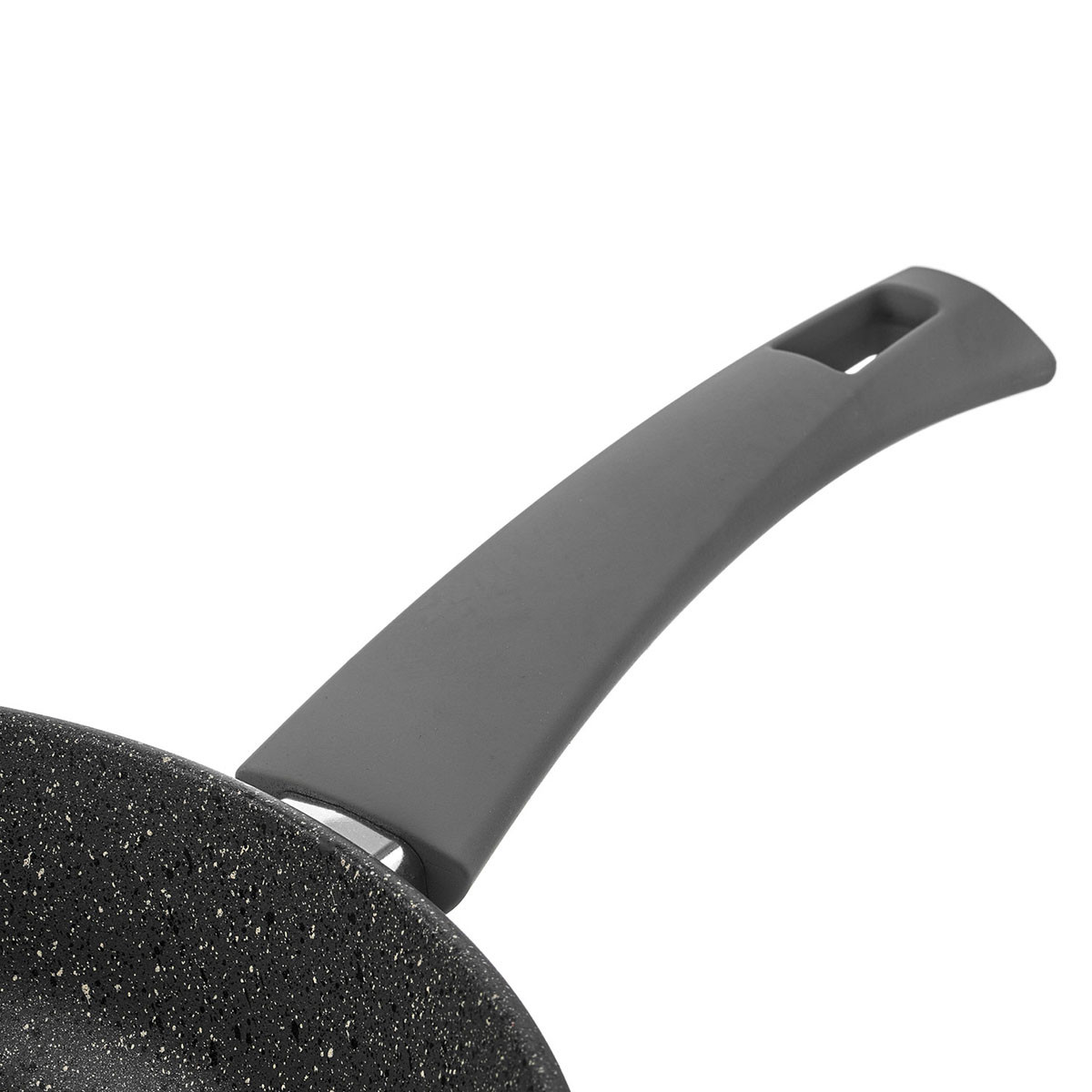 Сковорода 26см изготовлена из литого алюминия, имеет высокие антипригарные свойства, устойчивость к царапинам и истиранию. Допускается использование металлических лопаток и других аксессуаров без ущерба для покрытия. Качественное антипригарное покрытие Quantanium нанесено в три слоя и не допускает пригорания продуктов, позволяя готовить без масла. Покрытие не содержит PFOA (перфтороктановую кислоту), поэтому безопасно для человека. Изделие изготовлено из толстостенного алюминия, который быстро раскаляется и долго держит тепло. Массивное дно равномерно распределяет жар по всей поверхности, обеспечивая равномерную прожарку. С наружной стороны сковороды нанесено жаростойкое силиконовое покрытие, предохраняющее стеклокерамическую плиту от повреждений и загрязнений. Ручка Soft Touch не нагревается, не скользит в руке. Толщина стенки 4,5 мм; дна 6 мм. Изделие подходит для газовых, электрических и стеклокерамических плит. Можно мыть в посудомоечной машине.