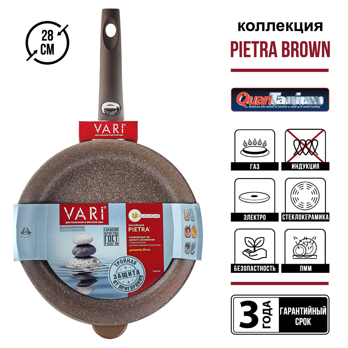 Сковорода со съемной ручкой 28см изготовлена из литого алюминия, имеет высокие антипригарные свойства, устойчивость к царапинам и истиранию. Допускается использование металлических лопаток и других аксессуаров без ущерба для покрытия. Качественное антипригарное покрытие Quantanium нанесено в три слоя и не допускает пригорания продуктов, позволяя готовить без масла. Покрытие не содержит PFOA (перфтороктановую кислоту), поэтому безопасно для человека. Изделие изготовлено из толстостенного алюминия, который быстро раскаляется и долго держит тепло. Массивное дно равномерно распределяет жар по всей поверхности, обеспечивая равномерную прожарку. С наружной стороны сковороды нанесено жаростойкое силиконовое покрытие, предохраняющее стеклокерамическую плиту от повреждений и загрязнений. Съемная ручка Soft Touch не нагревается, не скользит в руке. Толщина стенки 4,5 мм; дна 6 мм. Изделие подходит для газовых, электрических и стеклокерамических плит. Можно мыть в посудомоечной машине.