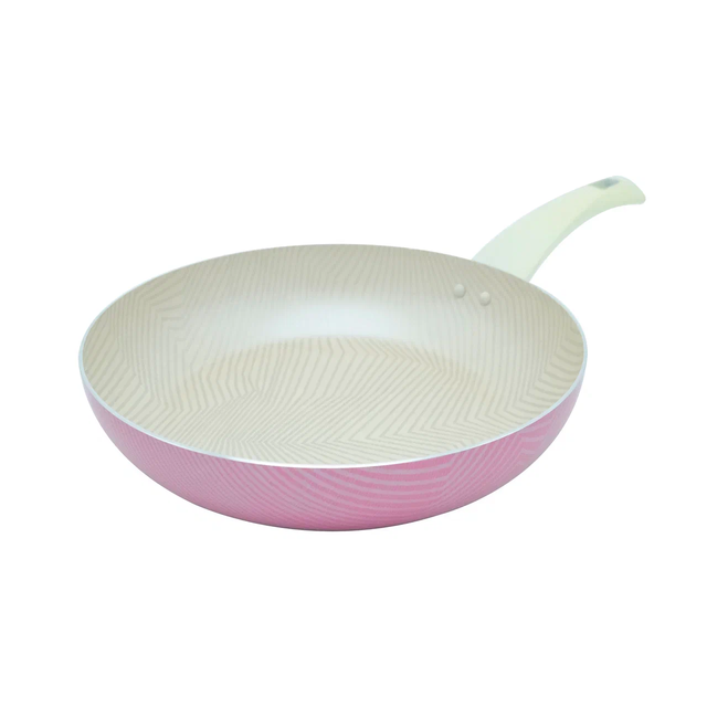 Жемчужина – это изящная посуда для хозяек, которые хотят придать интерьеру своей кухни немного женственности и нежности. Сочетание белого и розового цвета коллекции смотрится очень стильно и станет ярким и необычным акцентом, который разбавит нейтральный интерьер вашей кухни. Коллекция изготовлена из пищевого алюминия. У посуды трёхслойное антипригарное покрытие – с ним можно готовить практически без масла. Главные особенности коллекции: универсальная форма корпуса сковороды с высокими скошенными бортами, эргономичная жаропрочная ручка из бакелита, трехслойное усиленное антипригарное покрытие на водной основе и эффектное покрытие розово-белого цвета с рисунком. Коллекция «Жемчужина» подходит почти для всех типов плит. Ну а эффектное покрытие с рисунком «Полосы» и приятное сочетание цветов – украсят вашу кухню!