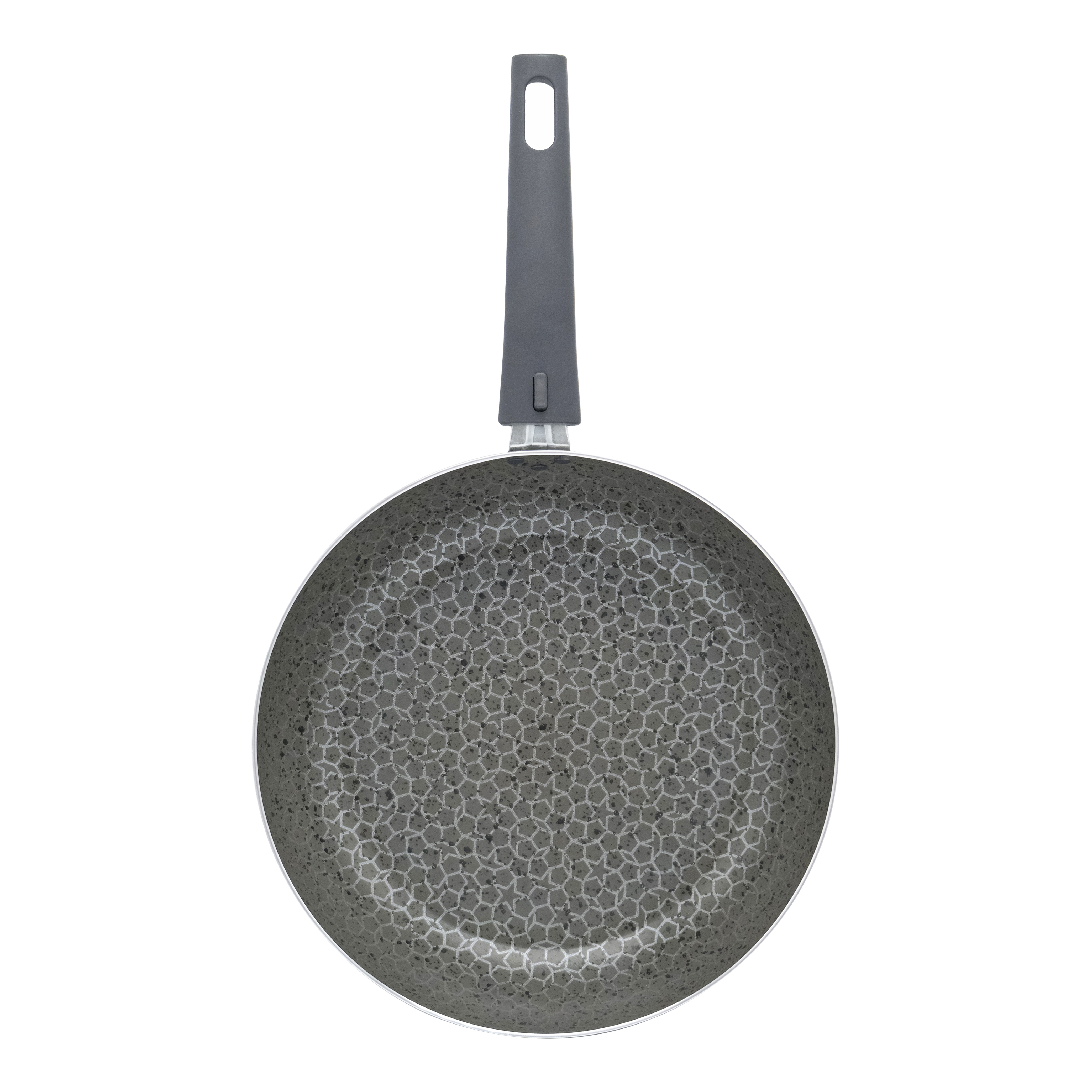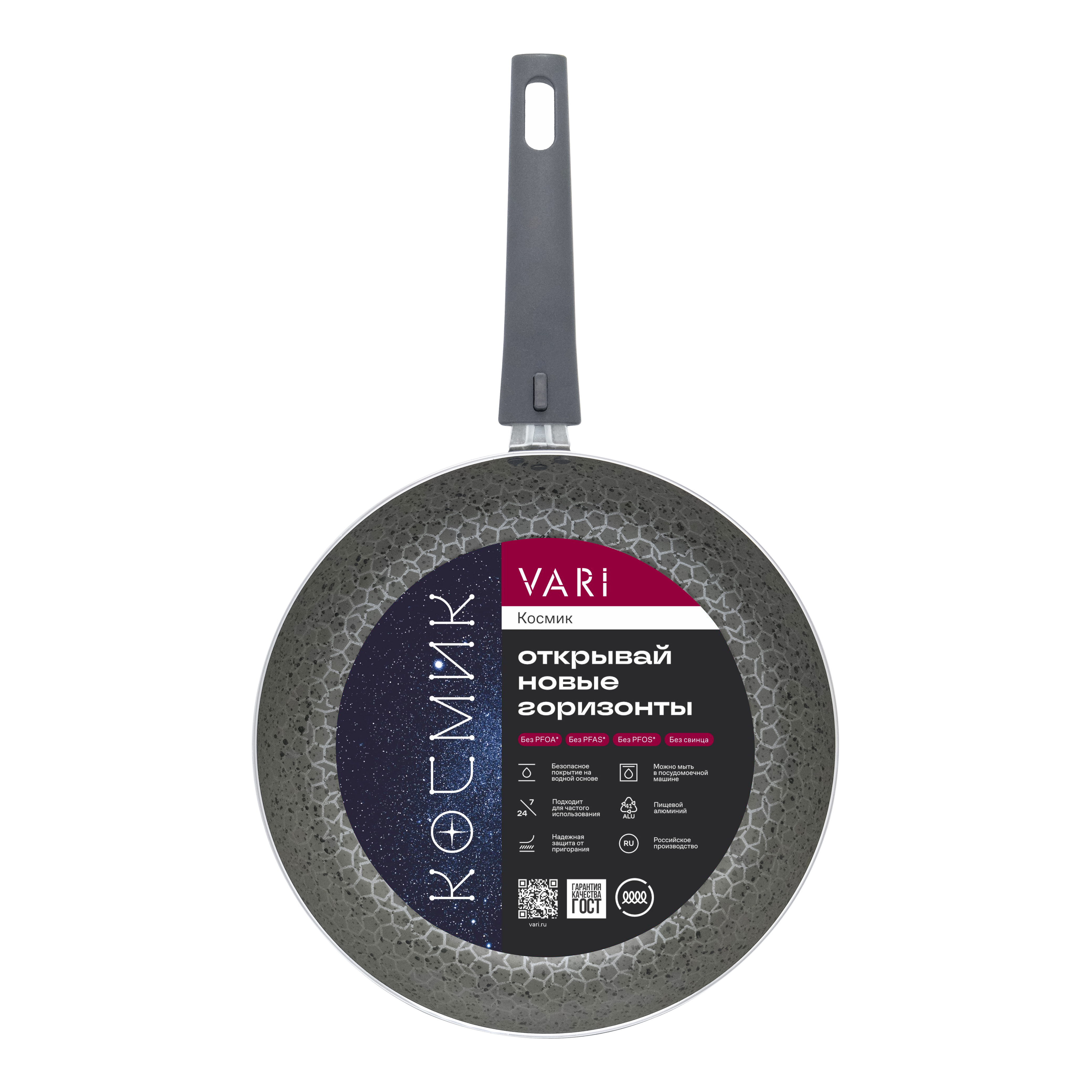 Коллекция индукционной посуды Космик. Благодаря космическому дизайну и футуристическому сочетанию цвета и рисунка, сковорода станет любимой на вашей кухне. Внутренняя поверхность чёрного цвета с оригинальным рисунком. Антипригарная система премиум-класса позволяет готовить с минимальным количеством масла и сохранять натуральный вкус продуктов. Покрытие отличается повышенной износостойкостью, сковорода долго сохраняет антипригарные свойства и безупречный внешний вид.