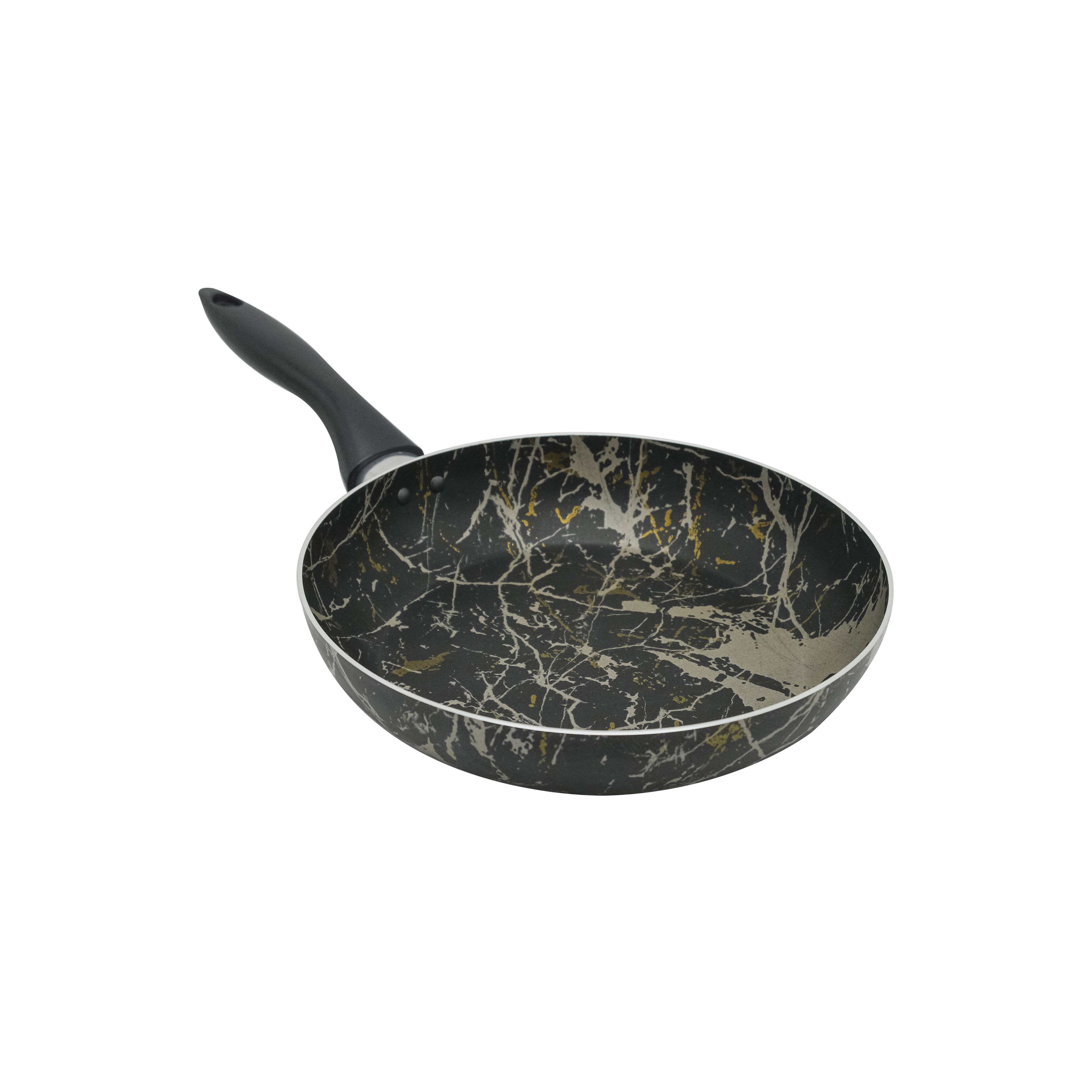 Вдохновленная благородным мрамором Неро Порт Лоран, коллекция «Лоран» воплощает роскошь природного камня с его угольно-черным фоном и изысканными золотисто-белыми прожилками. Посуда изготовлена из листового алюминия, покрытого трехслойным антипригарным покрытием на водной основе. Рисунок, нанесенный антипригарным составом усиливает прочность покрытия. Посуда укомплектована эргономичными жаропрочными ручками. Превратите процесс приготовления пищи в наслаждение — с посудой, где красота природного камня встречается с современными технологиями.
