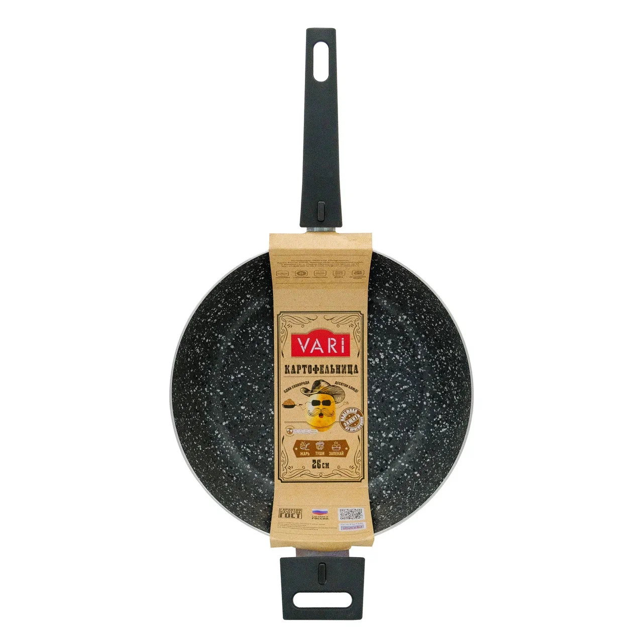 Жаровня с высокими бортами и съемными ручками, разработанную специально для приготовления картофеля. Одна сковорода – десятки блюд! Идеально подходит для жарки, варки, тушения или запекания.