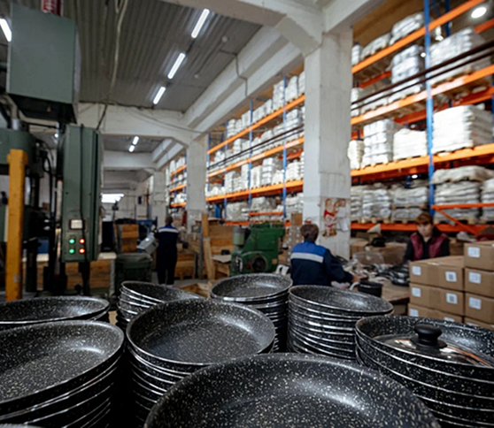 Мы — российская производственная компания, уже почти 25 лет выпускаем высококачественную алюминиевую посуду с антипригарным покрытием.